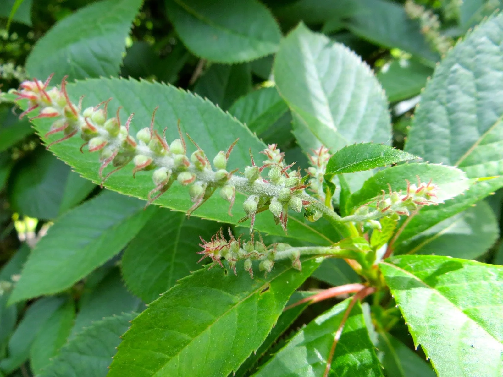 The foliage and flower buds of the Seattle Japanese Garden’s Clethra barvinervis. (photo: Aleks Monk, 2015)