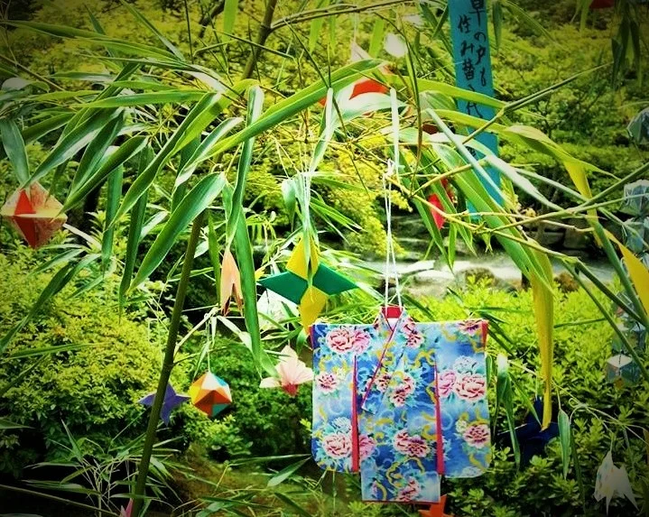 In Japan, Tanabata is celebrated by decorating bamboo branches with origami ornaments and tanzaku, small strips of paper where poems and wishes are written.