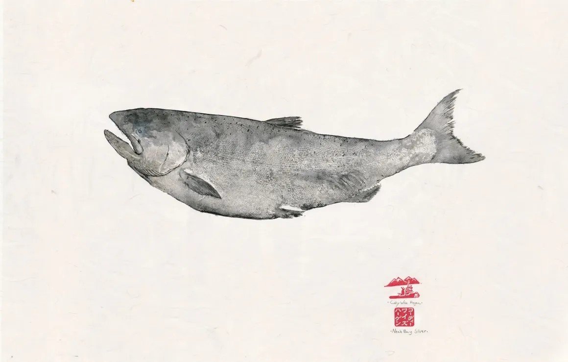 The simplistic yet bold contrast of the sumi ink on the mulberry paper and the over 150-year-old Japanese tradition of catching, printing, and preparing each fish for a meal speaks to me. I feel that the art of Gyotaku effortlessly captures the unique landscape we live in in Port Angeles. I’ve been studying and talking to Gyotaku masters, asking them questions about their craft, and exploring the art form while progressing my own unique style.